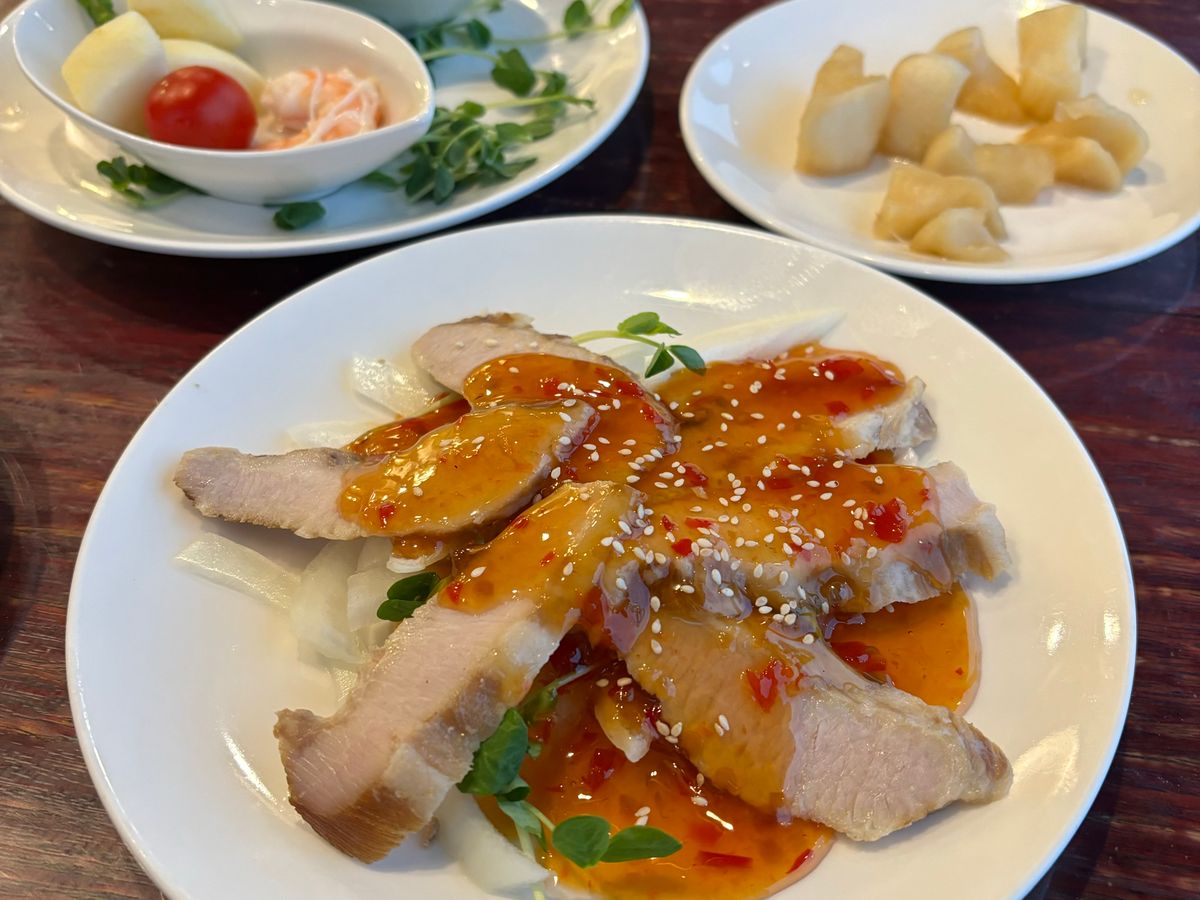 食事は酷評されていて期待していなかった為、普通に食べられるなあ、と感じました。8品コースですが一気に出てきました。大皿に大根の漬物が雑になっているのが一品だったり、旅行中の貴重な一食と思うと少し悲しいですが、エビのすり身揚げは美味しかったですし、レストランのスタッフの方も普通に親切です。