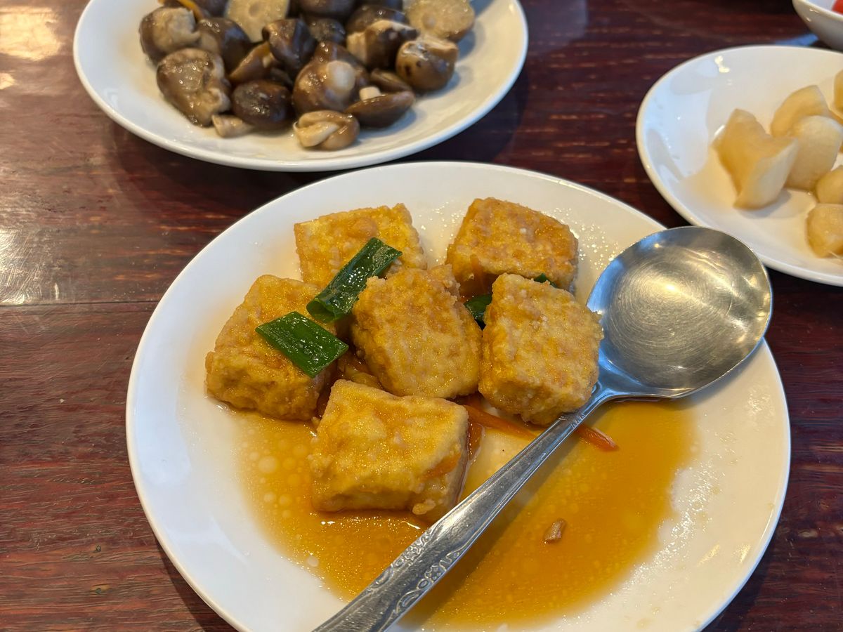 せっかく美食の国・台湾への初めての旅行の到着初日の記念すべき第一食目に、これぞ台湾!と言えるような美味しい食事を両親に食べさせてあげられなかったのは残念でしたが、幸い好物の椎茸料理があったことと、阿妹茶館をバックに写真をたくさん撮れて、両親は喜んでいました。
