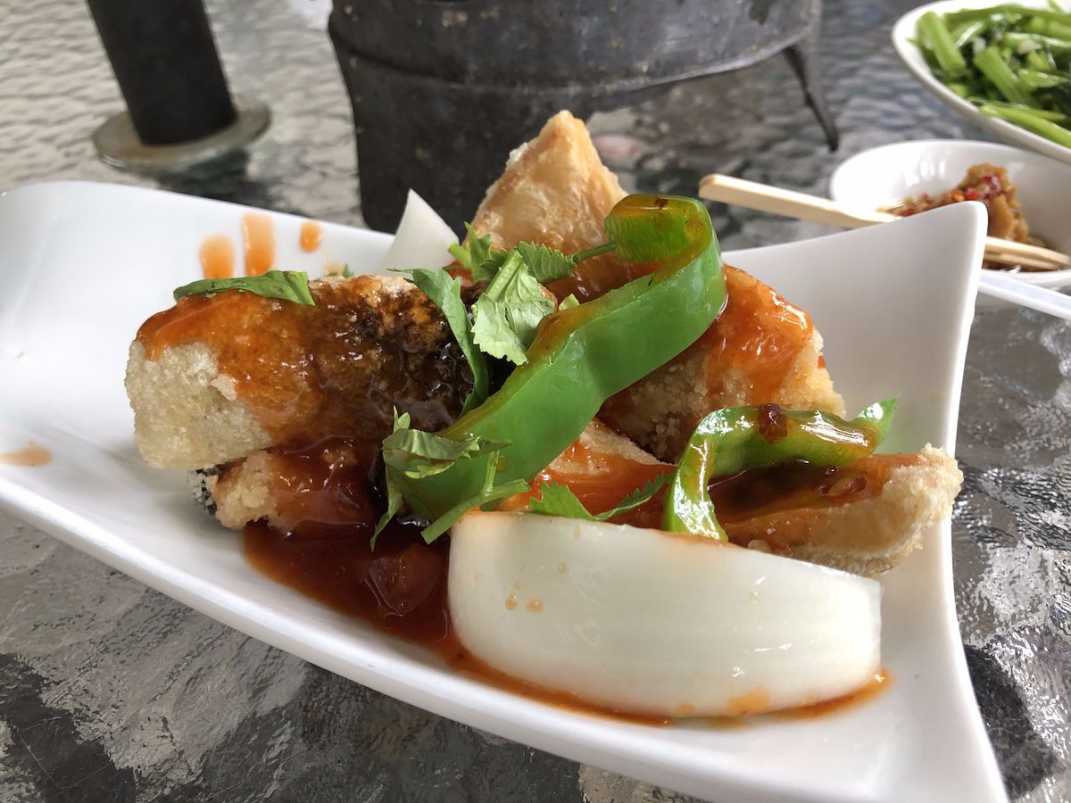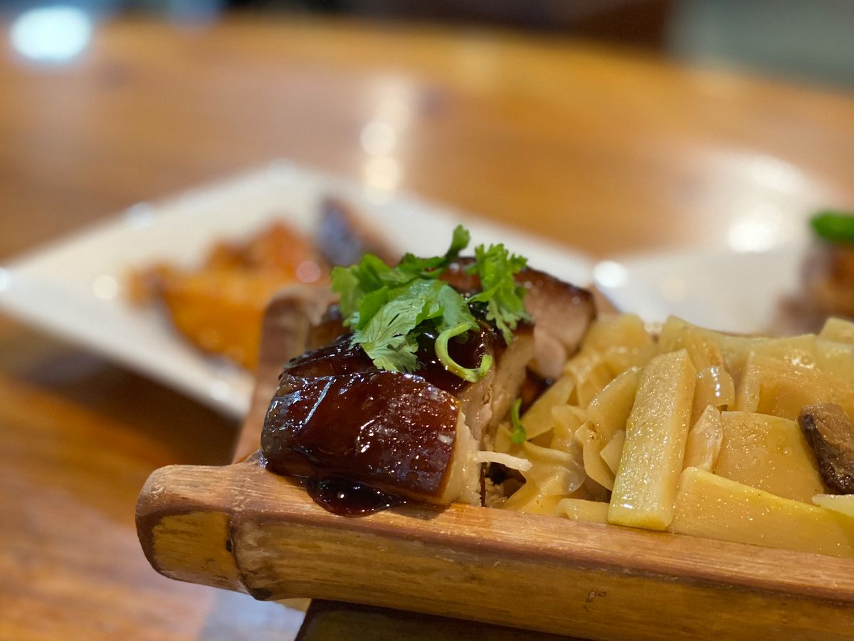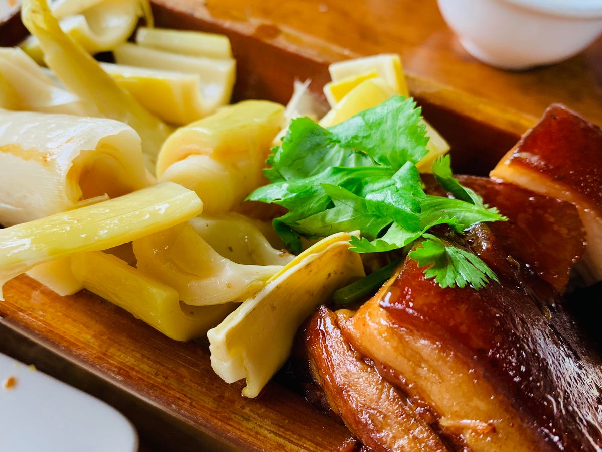 タケノコをたくさん使った料理で、豚の角煮からお魚の揚げ物まで種類は豊富、天気が良ければ是非テラスの席が良いと思います。川の音も聞こえて涼し気です。