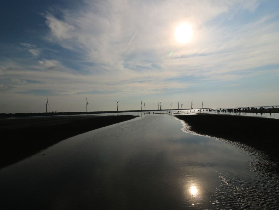 高美湿地は気温もちょうど良く引き潮だったので綺麗な干潟が見れました。11月中〜下旬で日没は17時10分です。