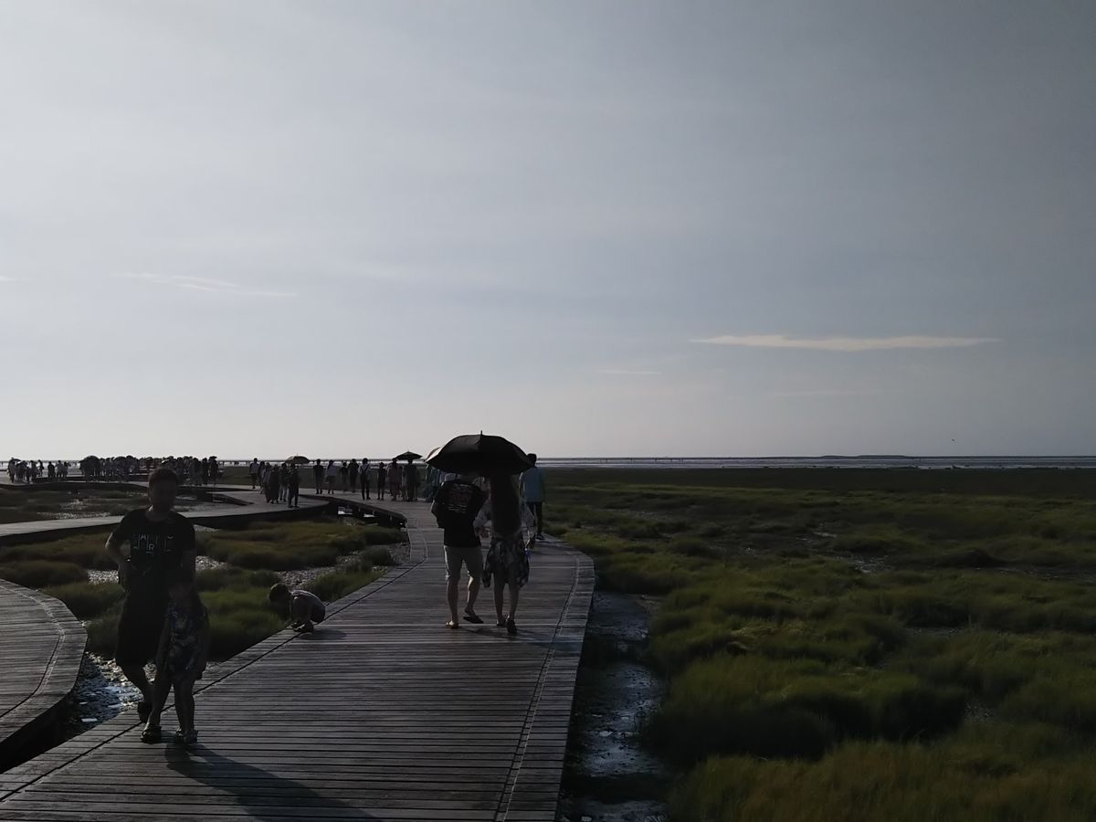 高美湿地はバスの場合は木道の駐車場ところまで行けるらしいですが、今回は乗用車のため駐車場からシャトルバスに乗り換えて行きました。木道のところで雨が降り始めましたが、なんとか傘なしで木道の先まで行って帰れました。カニやムツゴロウも沢山見えました。雨だったので写真で見るような夕日の光景は見えませんでしたが、こればっかりは自然のことなので仕方がないです。