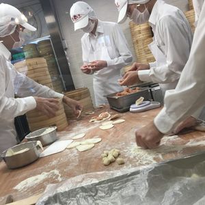有名な小籠包とタワーのツアーを予約しました。ディンタインォンでは3家族同席の丸テーブルでした。