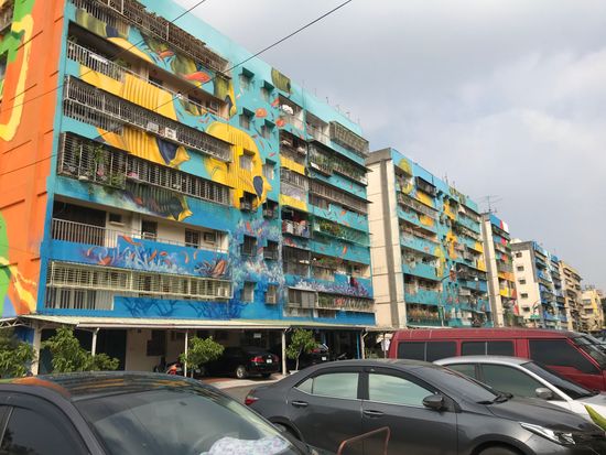 一般市民が住んでいるアパートの壁に、世界中の芸術家が絵を描いていて、町全体が”アート”になっています。
