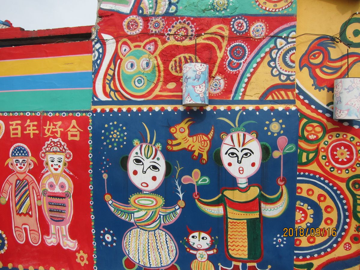 次の彩虹春村は、おじいさんが一人でカラフルな彩色を家の壁にしていたところでしたが、なかなか楽しかったです。扇子を買いましたが、色が面白くて買って正解でした。