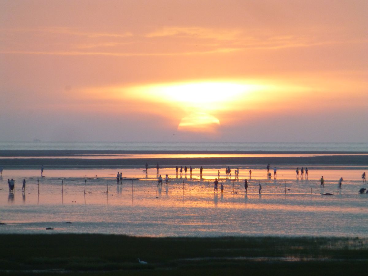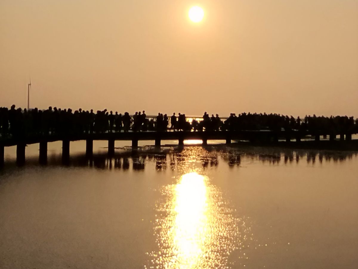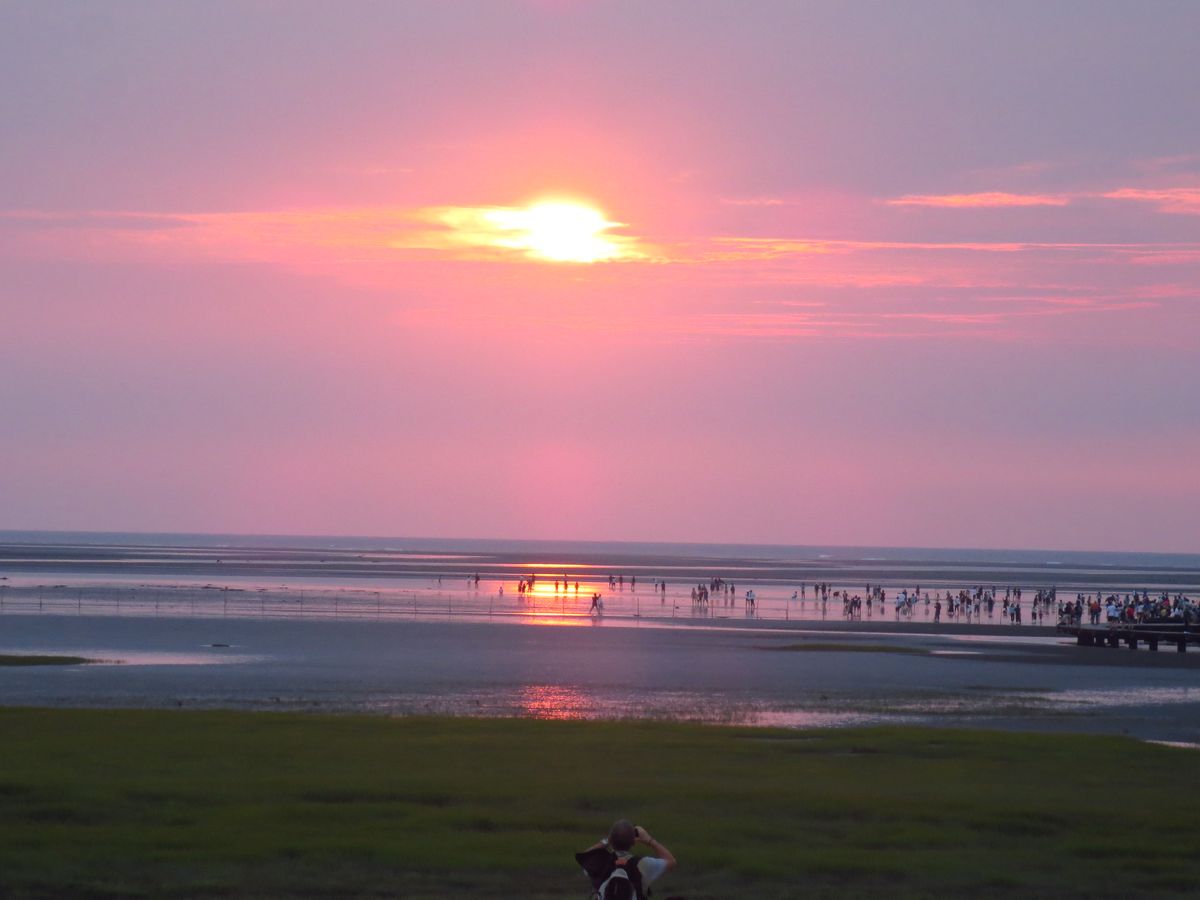 高美湿地は干潮だったので、ただの干潟でした。木道に人が鈴なりで、潮招(カニ)きを見ていました。夕陽が見られる様なスケジュールになっているのと思う、干潟の夕日は珍しくはない。潮の干満に合わせたスケジュールを望みたい。