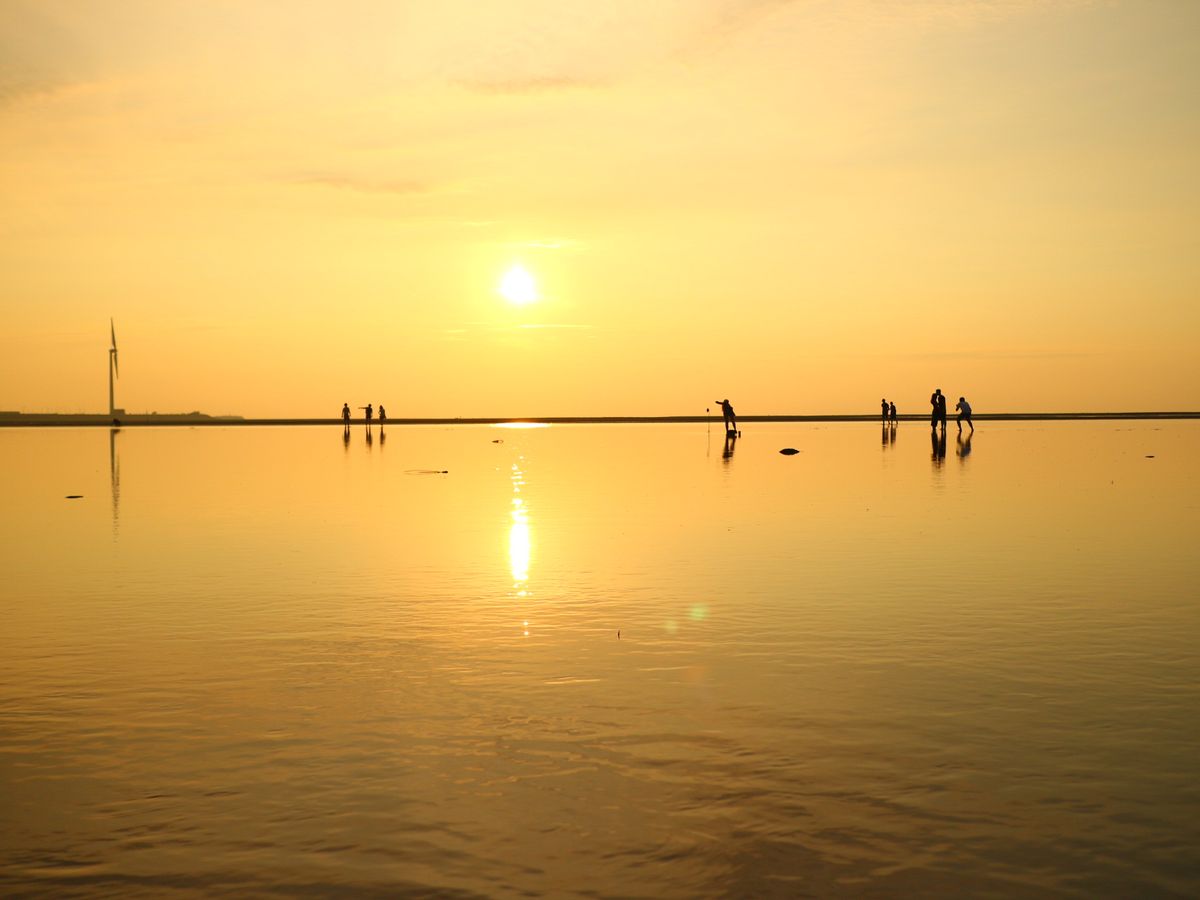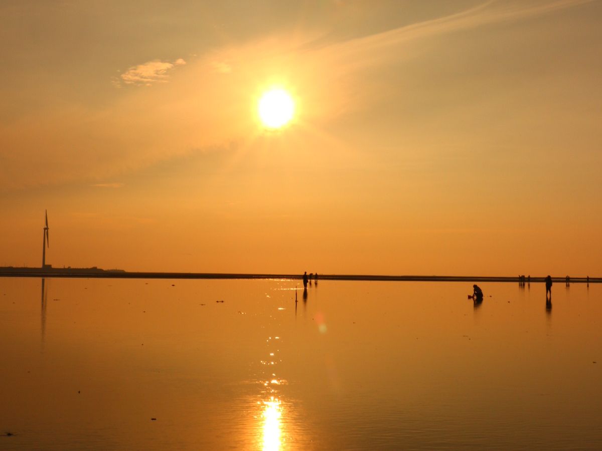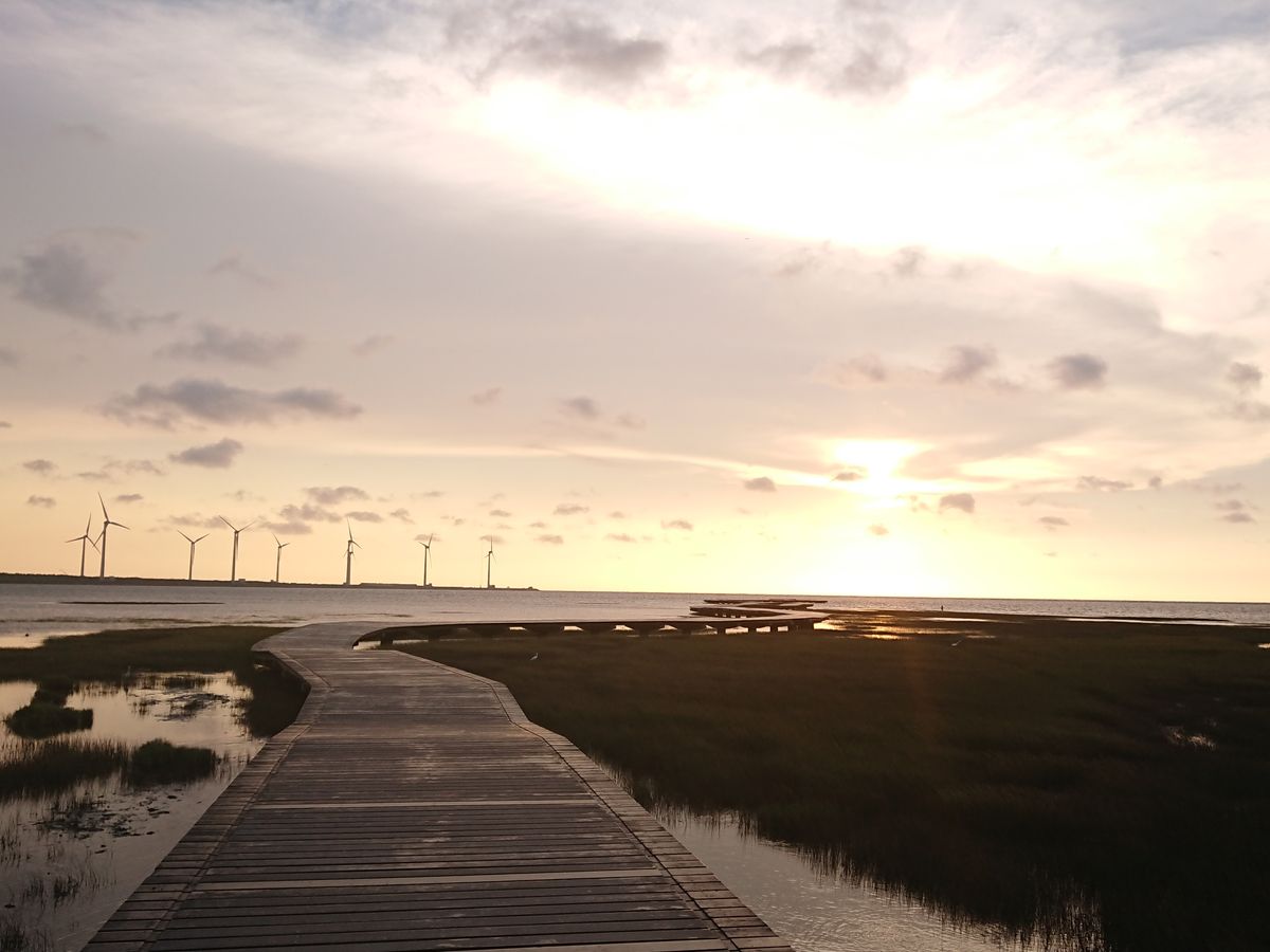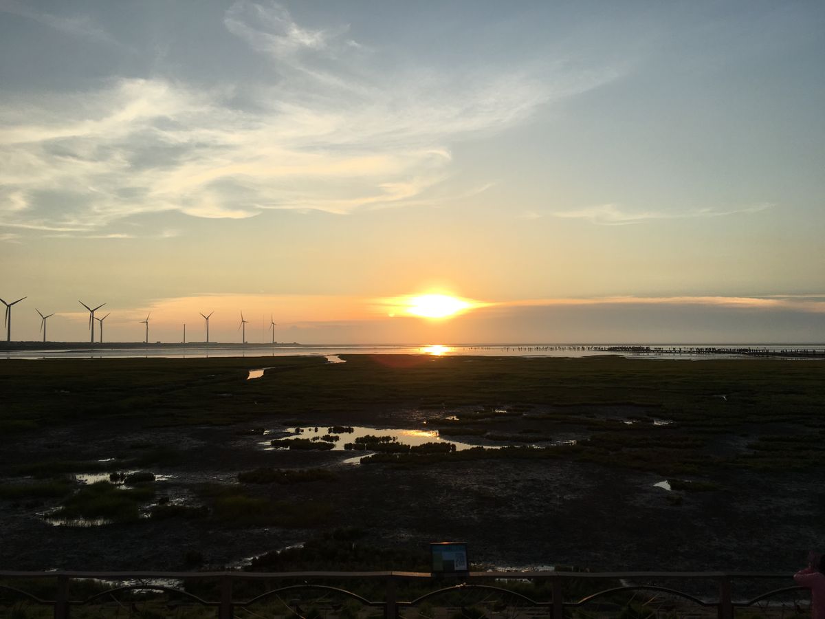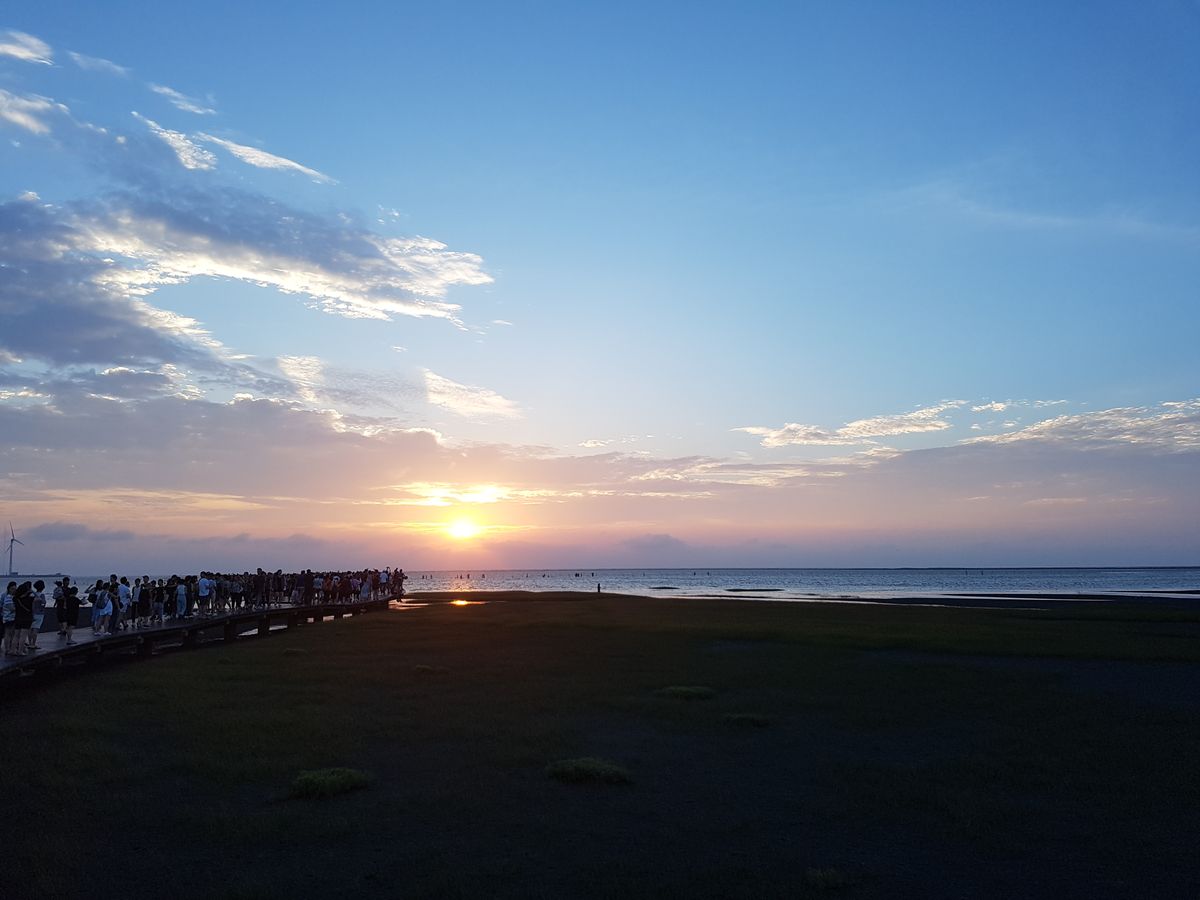 高美湿地は夕焼けがきれいでした!入りたい方はビーチサンダルを持っていかれるといいかもしれません。あとは結構時間を長く設けてあったので、日傘や日焼け止めの準備もあるといいと思います。