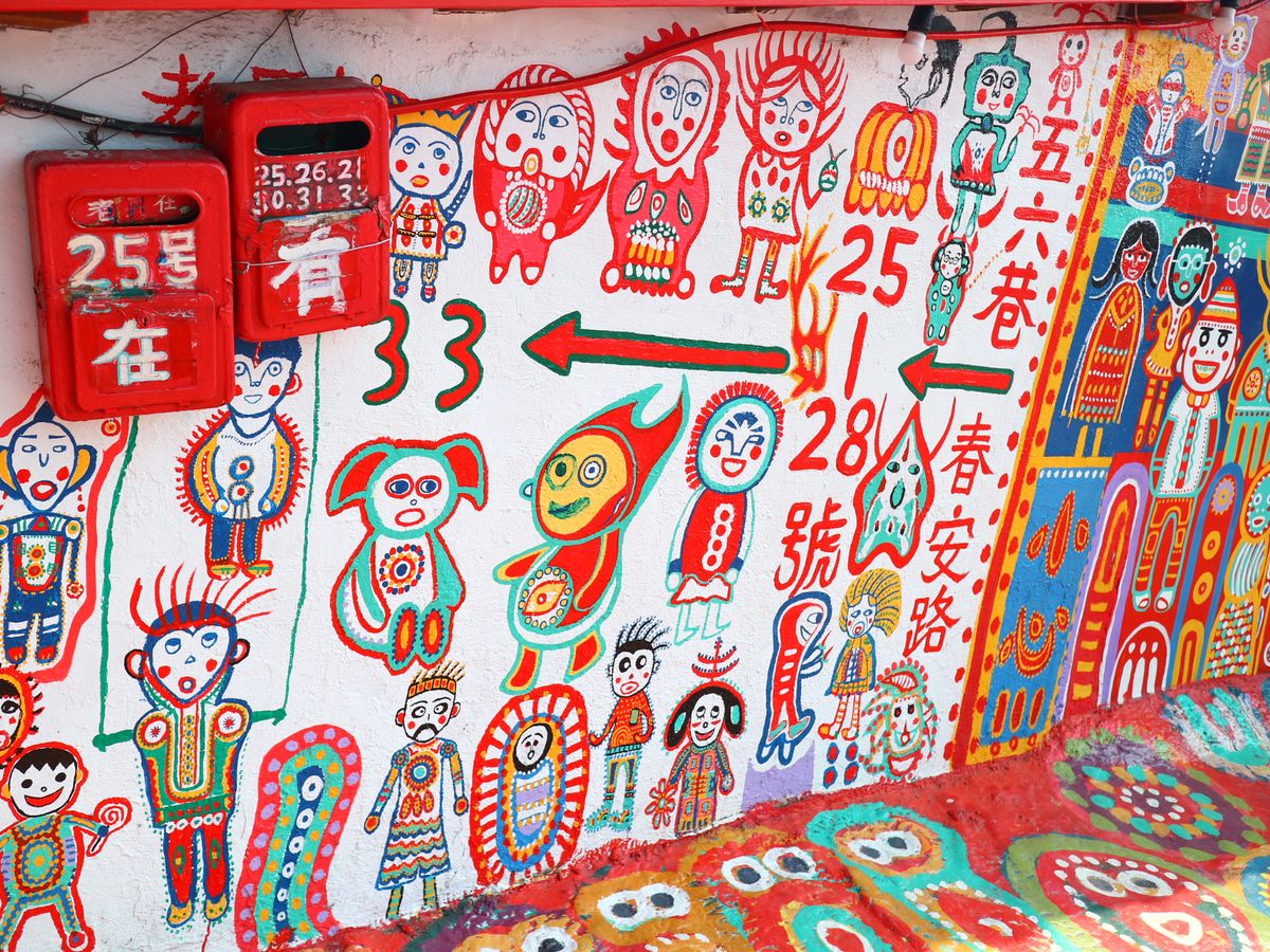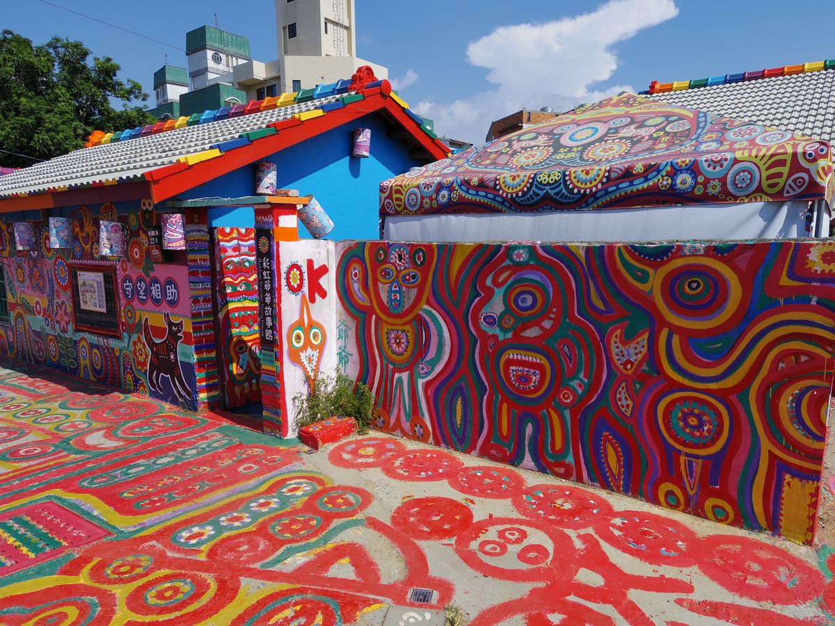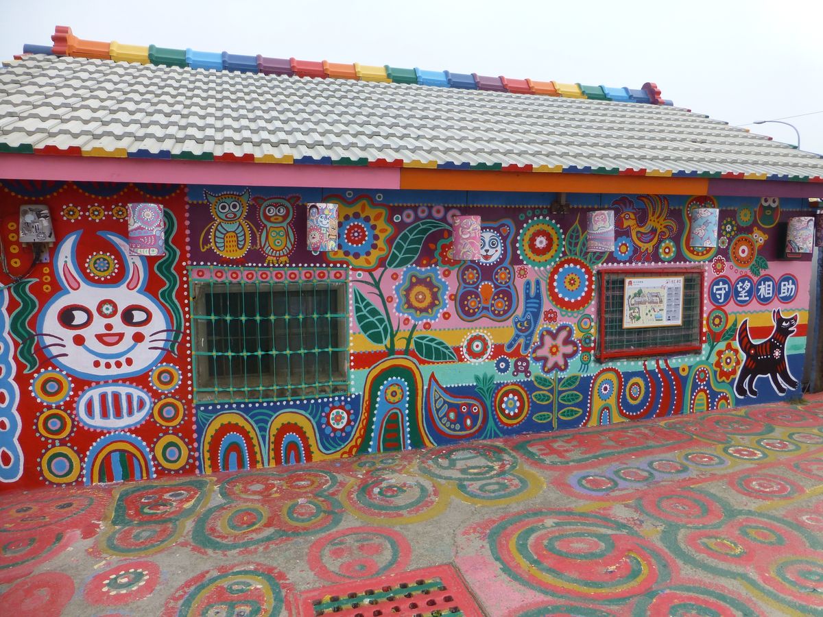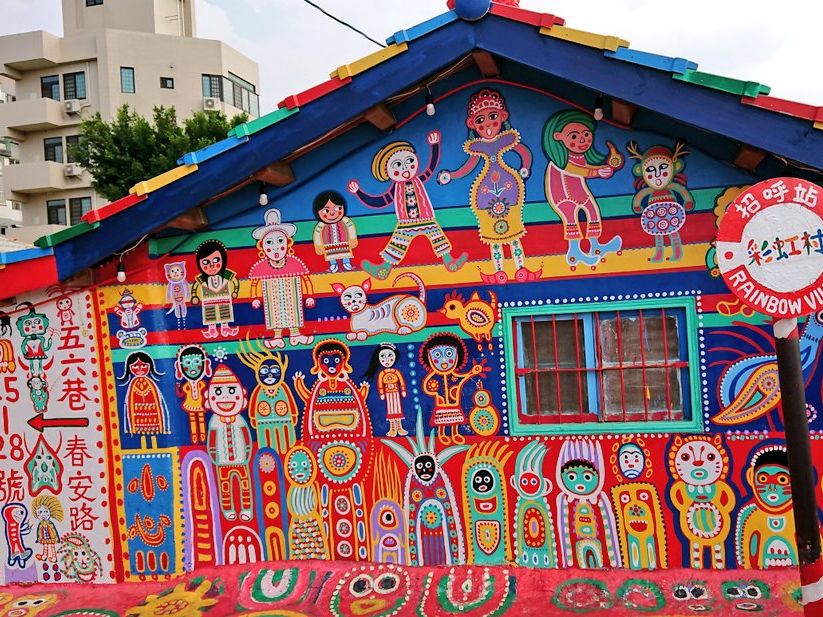 彩虹眷村は村というよりおじいちゃんの家なのでこじんまりしていますが、家から道路までポップな絵で埋め尽くされています。