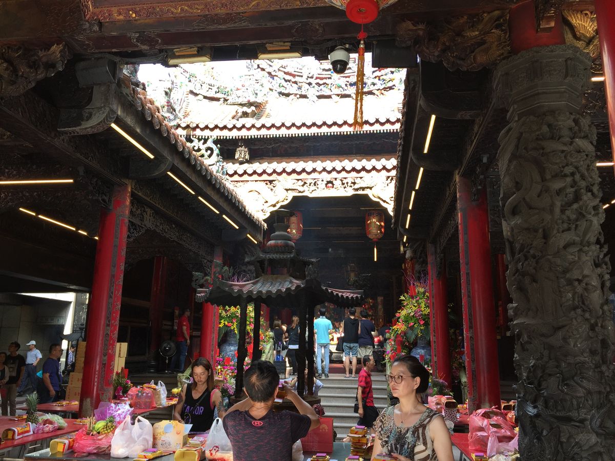 お寺ではちょうどお祭りと、重なったので爆竹とか普段見れないお神輿?とかもあって、拝拝の仕方も教えてもらえた。