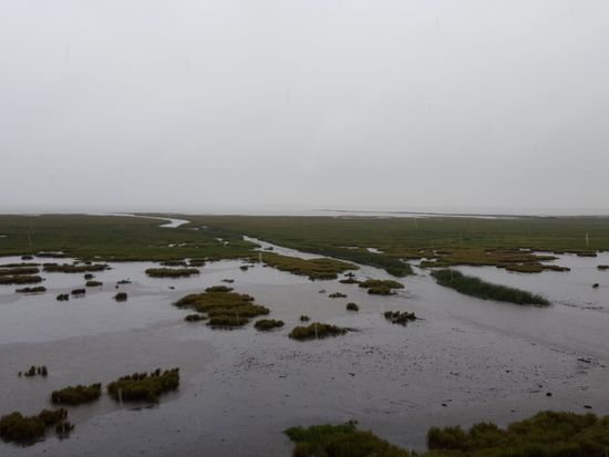 もう高美湿地に着く頃には皆くたくたでしたが、そこでも車からおろされたため、半ば諦めの気持ちで湿地に、向かいました。案の定どしゃ降りなので景色が良いわけもなく、霧がかかっているような状態でした。景色の記憶よりも、とにかく寒い記憶の方が強いです。