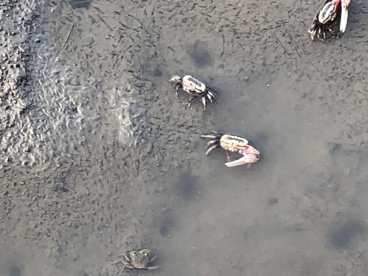 高美湿地は、残念ながら雲で寒く夕焼けも見れませんでしたが、ムツゴロウと蟹がおり楽しめます。海に入る方はサンダルがいいです。駐車場に足洗い場もありました。