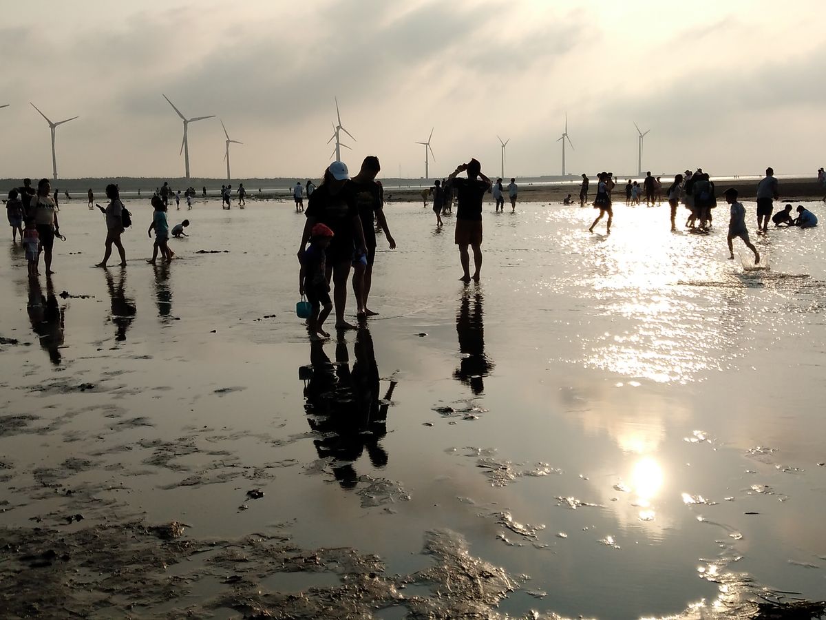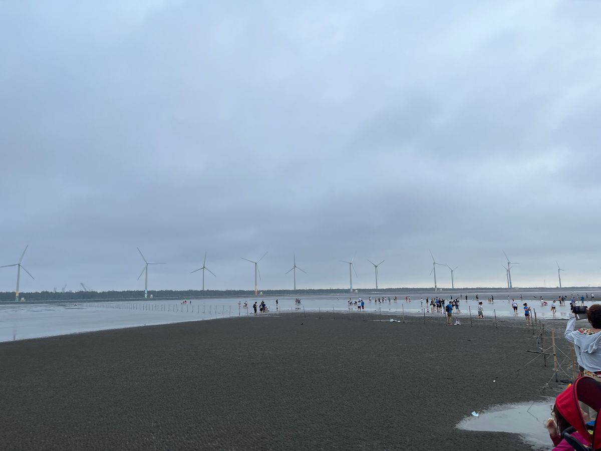 高美湿地観光ツアー:天気が悪く夕日は見られず。単に引き潮の遠浅の海岸を見ただけ。最後にガイドに今週は皆さん夕日は見られませんでした。あなたたちだけではないですとなぐさめられました。