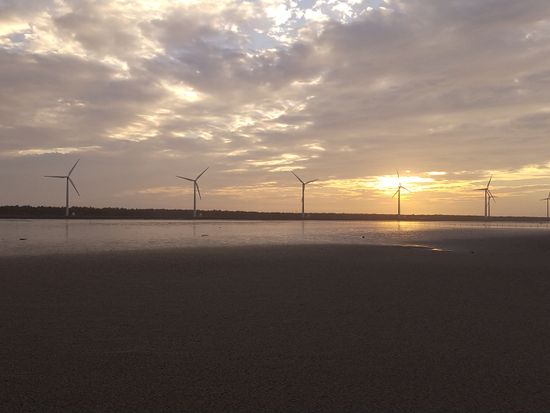 高美湿地は隣に風力発電があるくらい風が強く、ウユニのような鏡面を期待しすぎると期待外れに終わるかも、期待しすぎないと、十分楽しめると思います。