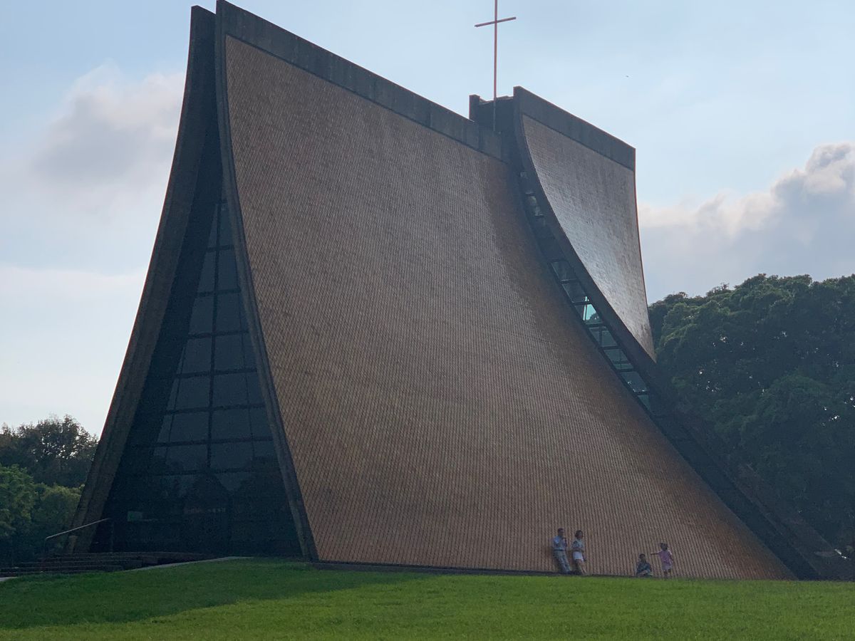 途中ツアーの予定になかった東海大学の敷地内にある日本人が設計したピラミッド型の教会に行きました。