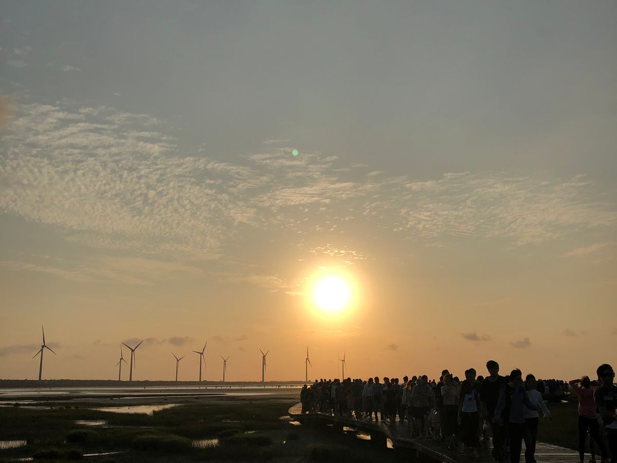 寂れた街を、だらだら歩く、複数の道教のお寺をみるなど、メリハリにかけ、長く感じました。高美湿地へ向かうまえ、最後に寄ったガラス工場のガラス製のお寺はとても安っぽく、あえて寄る必要はなかったとおもいます。直接 高美湿地にむかえば夕焼けにまにあったとおもうと、残念でなりません。