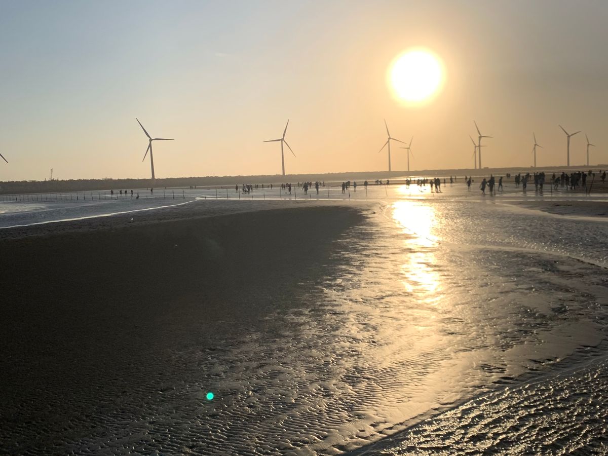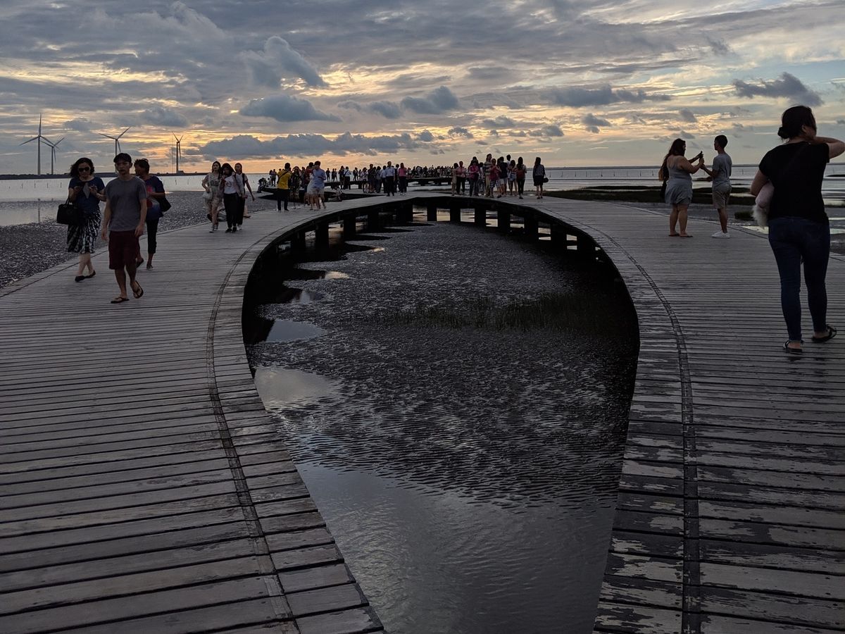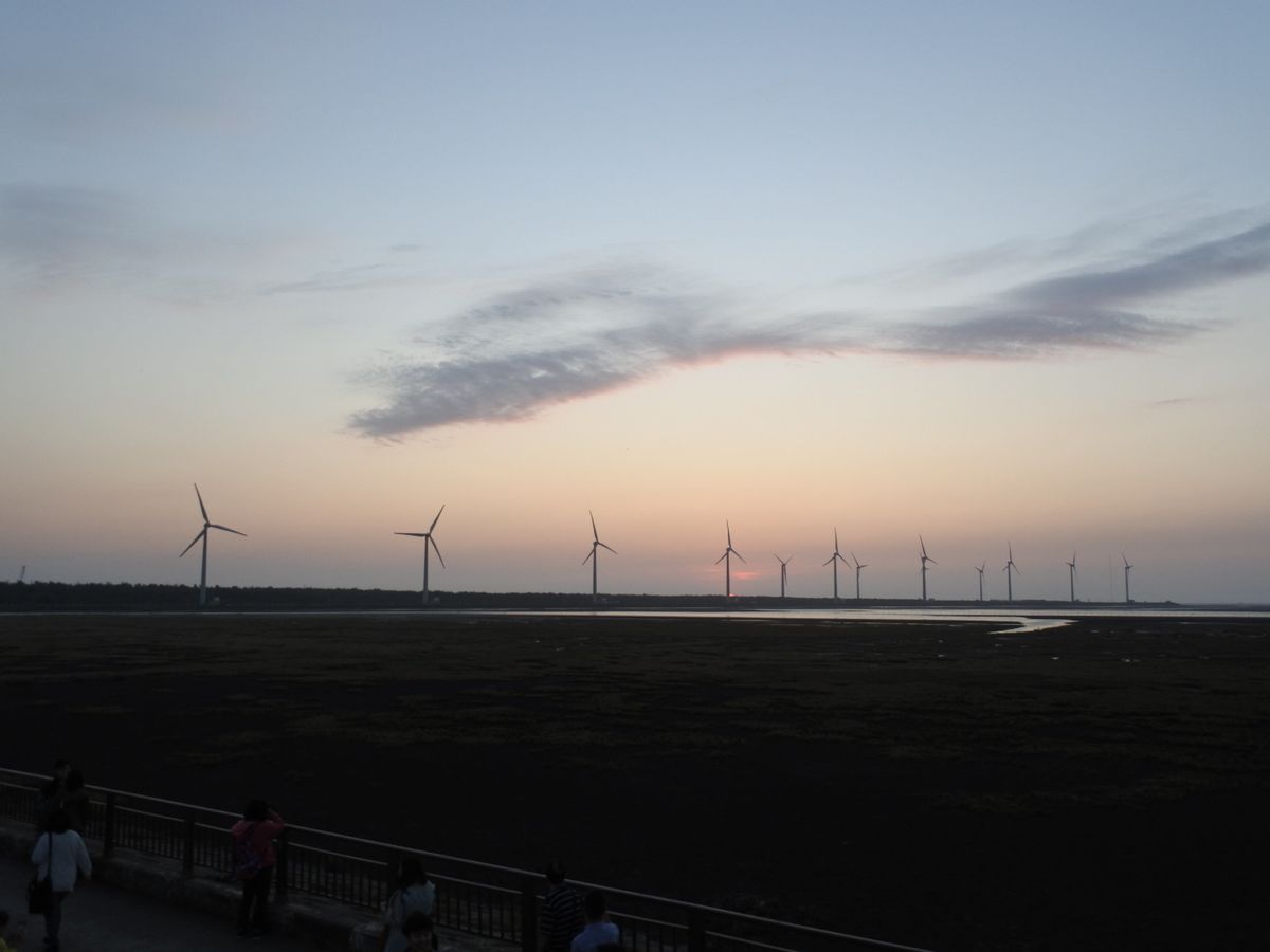 ツアーでもっとも楽しみにしていた高美湿地は、なんと到着したのが日没とほぼ同時でした。とうぜん、くらくて湿地に光が反射して美しい景色はのぞめず、暗い中とくになにもせず帰路につきました。