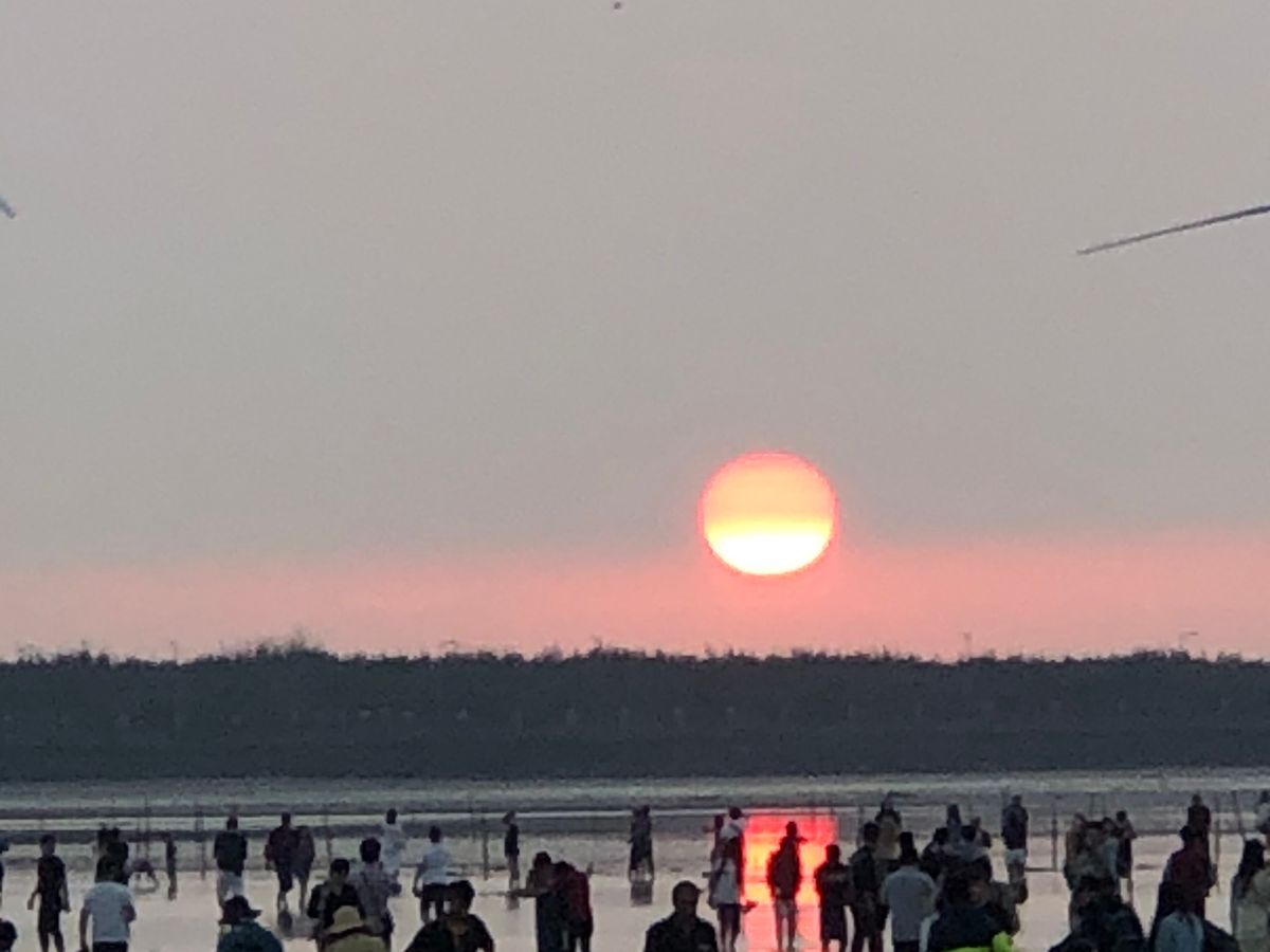 高美湿地ではタオルを準備して行きましたが、入れないとの事で残念でしたが、本当に綺麗な夕陽を堪能できました♫