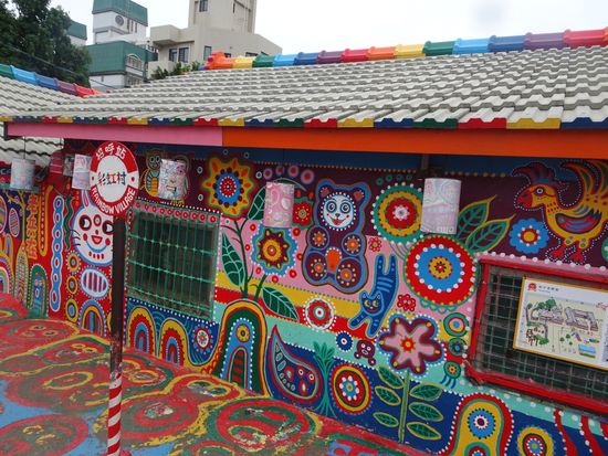 午前からは6人、自由食の昼食後からの参加はなんと30人増えて36人!台中のオペラハウスにいき、レインボービレッジへ。めちゃくちゃ都市開発地区の一角にあってものすごい違和感。もともと取り壊し地区の中の家に絵を描いてそれが話題になって取り壊しされずに保護されてるんだからまぁそうだよねー。で、実際入ってみるとおじいちゃんの絵に引きこまれ不思議な世界にいるみたいになって楽しくなってしまいました。おじいちゃんもいて、一緒に写真撮れたし、ホントによかった。