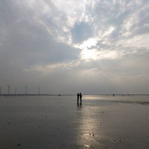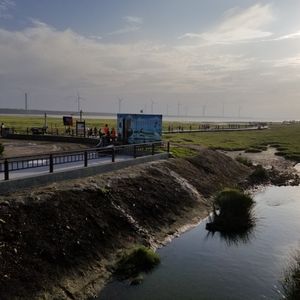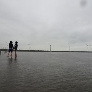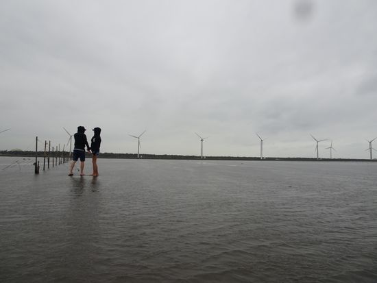 高美湿地では海に入れる。川の真水の方が多いのか、入ってもヌメヌメしないので、タオルを持参して是非入ってみることを勧める。