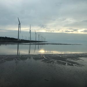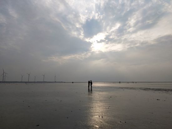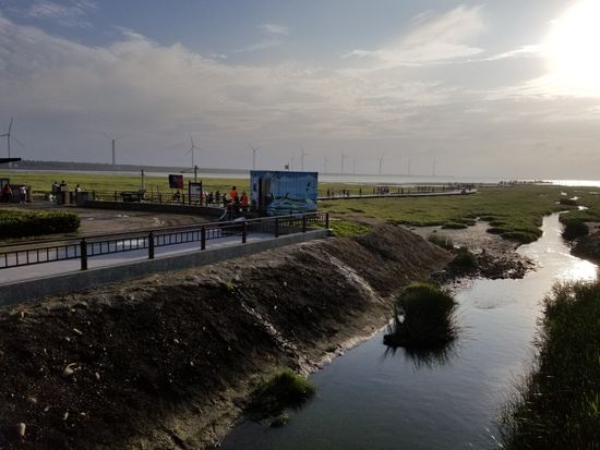最後の高美湿地は、風力発電機とサンセットとのコントラストが非常に良かったと思います。1センチ程度の小さなカニが沢山湿地におり、かわいいと思いました。この湿地の上に木製の通路が600m程度沖まで敷設されていて、ムツゴロウ見物の観光客の行き帰りで通路上は驚くほど混雑しています。雨の場合は最適とは思いません。