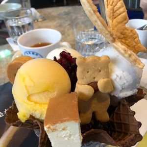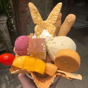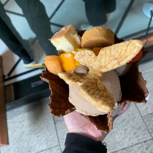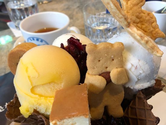宮原眼科のお土産はかなりお高めですね。クオリティーはもちろんありますが、その場で楽しめるアイスクリームをお勧めします。こちらもお高めですが、シェアすればいただけるし、何よりも量がかなりあるのでシェアが断然お得です。宮原眼科で実際に販売しているスイーツも入っていますよ。