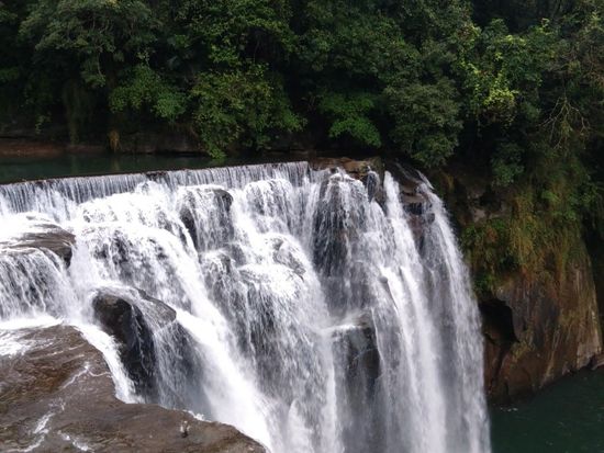 十分の人気スポットの一つ、十分瀑布を訪問。落差20m幅40mの滝で、台湾のナイアガラとも称されています。滝付近の長い吊り橋からの美しい景色も必見です。
