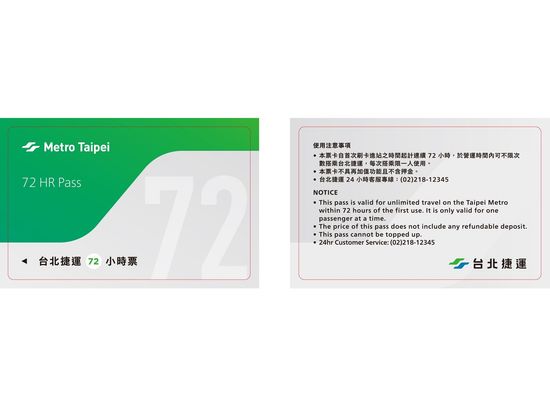 含まれるもの: 台北メトロ乗り放題乗車券(72時間券)