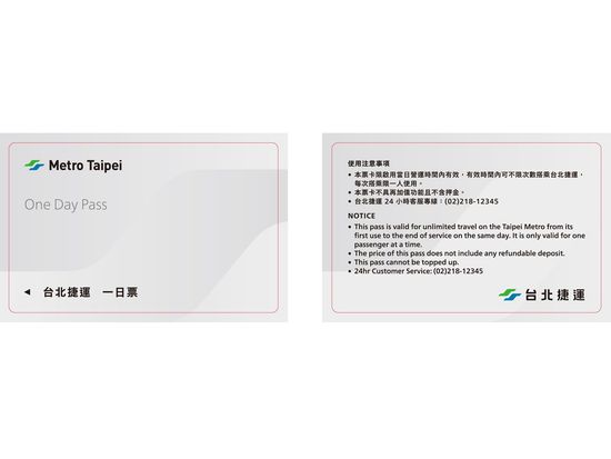 含まれるもの: 台北メトロ乗り放題乗車券(1日乗車券)