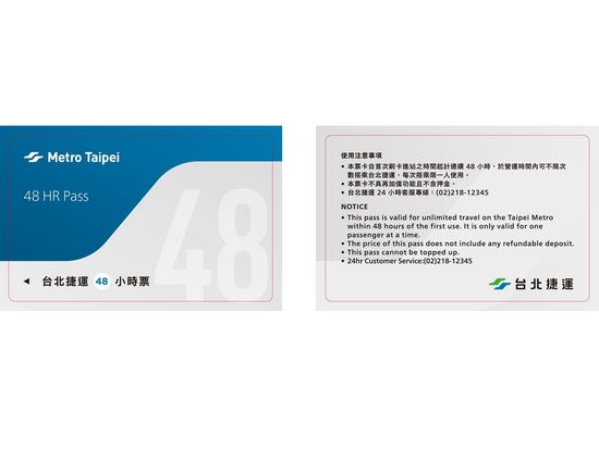 含まれるもの: 台北メトロ乗り放題乗車券(48時間券)