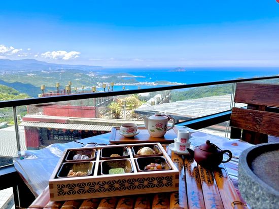 九份を代表する老舗茶芸館「阿妹茶楼」の景観席で、JTB限定「六趣茶菓」のティータイムをお楽しみください。