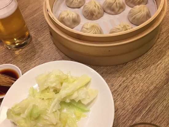 ディンタイフォンに着くと、かなり並んでいましたが、まもなく席に通され、すぐに小籠包など運ばれてきました。18デイズビールもありました。品数も量もちょうどよかったです。