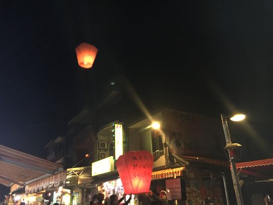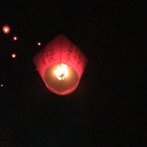 初めての天燈上げ、お願いごとを書くのも、無事に高く上がっていく天燈を見るのも楽しかったです。ちょっとはしゃいじゃいますね。