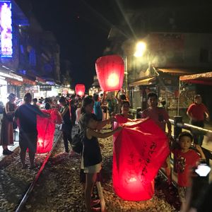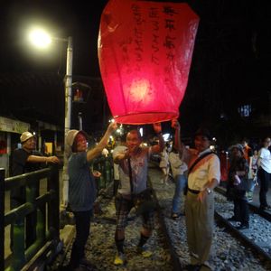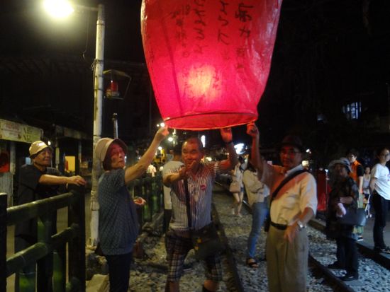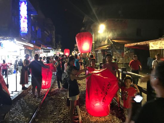 十分は台北市から電車で1時間、台湾三大ローカル線の一つ平渓線(台湾鉄路) に乗って行くことができます。十分駅を降りると昔懐かしい民家や自然風景が広がります。 昔からこの地は、人里離れた山地で、盗賊が現れると村人たちは山に隠れ、盗賊が去るのを待ち、天燈を使って連絡し合ったといわれる、 らんたん (天燈)の発祥地です。夜空に願い事を書いたらんたんを飛ばす平溪天燈節は、 台湾の旧暦・元宵節に行われ、毎年十分には数万人が訪れます。