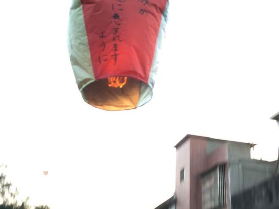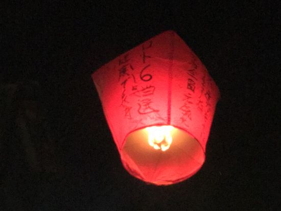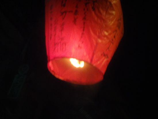 その後、念願のランタン上げをやったのですが、飛んでいく姿を見て感動しました。