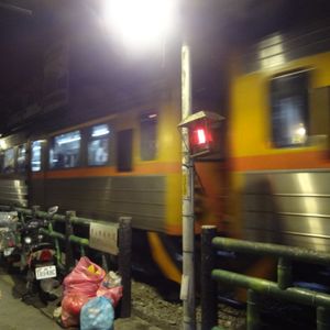 線路上で行うので電車来たら、もちろん避けます。