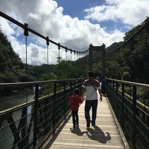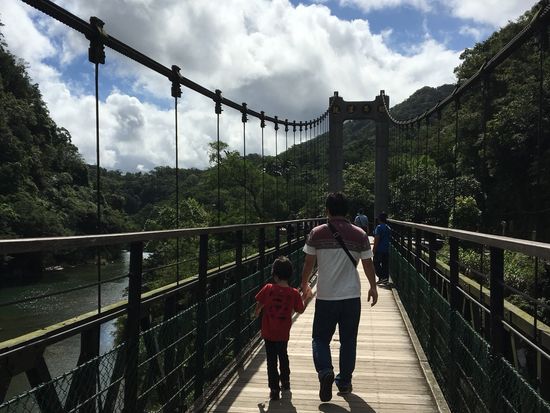 4歳、6歳のこどもを連れて電車に乗るのが不安だったこと、暑い時期にいったのでそんなに歩くと熱中症が怖いと思ってツアーに申し込みました。朝8時にホテルのロビーで待ち合わせをして、出発したのですが、十分の滝は道も狭くてつり橋もあったので、まだ混む前の朝早くに到着して良かった!と思いました。