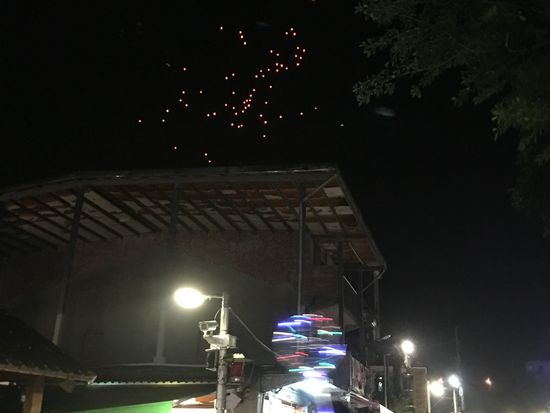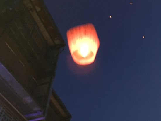 天燈上げも、タイミング良く真横で電車が通過し、お願い事もたくさん書き、空高くまで上がり大興奮でした。