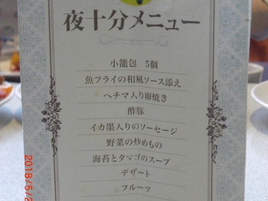 ツアーの前に台北市内で夕食を頂きましたが、もう少しグレードアップしたお料理の方がいいような気がしました。しかし、同じツアーに参加された方々とも話したり、和気藹々と楽しかったです。