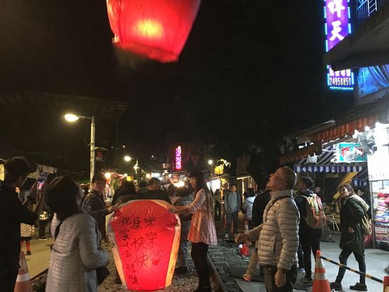 十份でのランタン上げは、移動中に