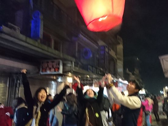 実際にやる前は、子供の遊びみたいだなあ、あまりやりたくないなあと思っていましたが、願い事を書き、天燈を自分で持ち、お店の人に火をつけてもらい、手がだんだん熱くなり、いざ手を放すと勢いよく空に上がっていきました。その日はあいにく、風が強く失敗しているグループもあった中で、私たちの天燈は、ぐんぐん空高く上がっていきました。感動で自然に手を叩いていました。願いが叶うかどうかは別にして、空高く上がっていくのを見ると、とても感動しました。また機会があれば、天燈を上げに行きたいと思っています。ドライバーさんも大変親切でいろいろ気づかいしてくれました。ありがとう。