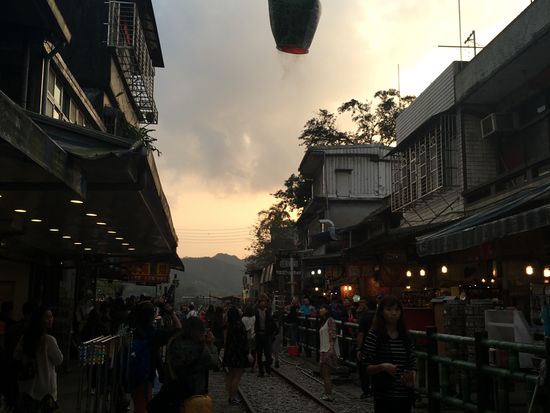 十分は、ちょっと遠いので、ツアーに参加しました。夜だからでしょうが、提携の天燈あげのお店以外は、店が閉まっていたので、ちょっとさみしくもありました。