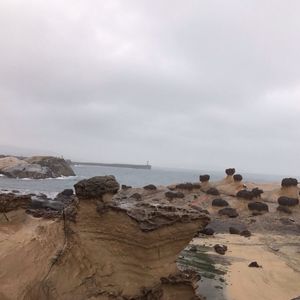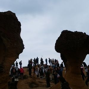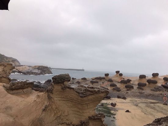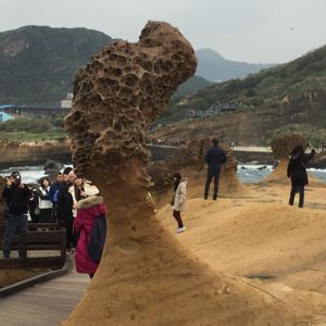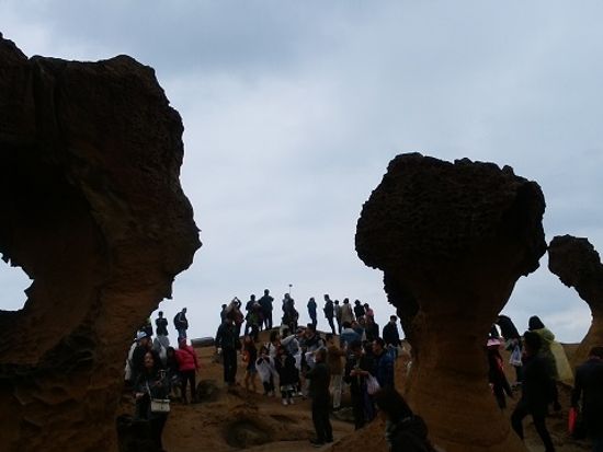 野柳では、あいにくの雨で人も多く傘をさしての観光は大変でしたが今までに見たことのない風景を見れて感動しました。
