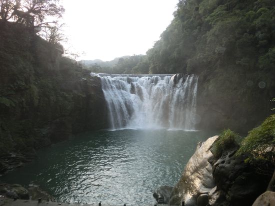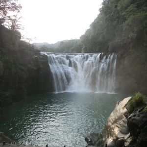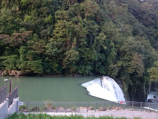 野柳から40分ほどで十分瀑布に到着。雨上がりで駐車場から滝までの道も滑りやすく、ぬかるんでいましたが水量も多く迫力ある滝を間近に見れました。