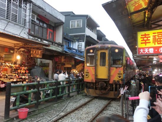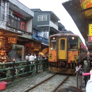 十分は台北市から電車で1時間、台湾三大ローカル線の一つ平渓線(台湾鉄路) に乗って行くことができます。十分駅を降りると昔懐かしい民家や自然風景が広がります。 昔からこの地は、人里離れた山地で、盗賊が現れると村人たちは山に隠れ、盗賊が去るのを待ち、天燈を使って連絡し合ったといわれる、 らんたん (天燈)の発祥地です。夜空に願い事を書いたらんたんを飛ばす平溪天燈節は、 台湾の旧暦・元宵節に行われ、毎年十分には数万人が訪れます。