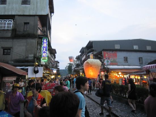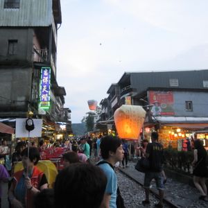 十分は台北市から電車で1時間、台湾三大ローカル線の一つ平渓線(台湾鉄路) に乗って行くことができます。十分駅を降りると昔懐かしい民家や自然風景が広がります。 昔からこの地は、人里離れた山地で、盗賊が現れると村人たちは山に隠れ、盗賊が去るのを待ち、天燈を使って連絡し合ったといわれる、 らんたん (天燈)の発祥地です。夜空に願い事を書いたらんたんを飛ばす平溪天燈節は、 台湾の旧暦・元宵節に行われ、毎年十分には数万人が訪れます。