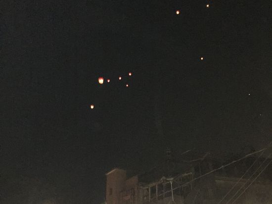 昼間の天燈上げはカラフルで楽しい感じでしたが、夜は空に舞い上がる光景がとても幻想的で感動しました。
