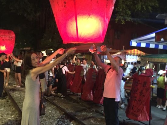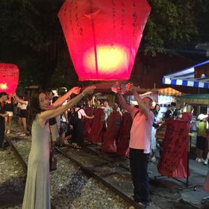 行かれる方に是非おすすめしたい事は、十分天燈上げの際に周りの日本人に話、何組かを同時に上げた方が魅力的だと思います。私達の時は1チームずつ上げたので写真にスケール感があまりなく、他の団体では同時に上げていたので、うらやましく思いました。