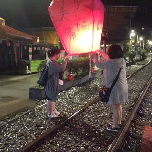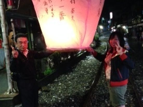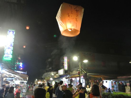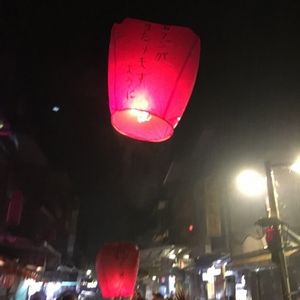 テレビ等で天燈を見てから頭から離れず、念願かなって大変満足しました。当日は雨で残念でしたが、願い事を書いて天燈は無事に飛んでいきました。もっとゆらゆら行くのかと思いきや・・・・結構な勢いで飛んで活きました。周辺を散策したのですが、人気が余りなく、特に駅の方は治安が良くないと感じました。