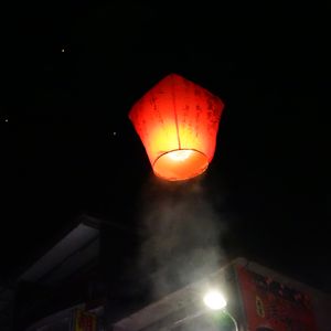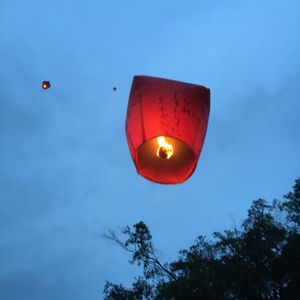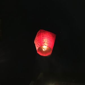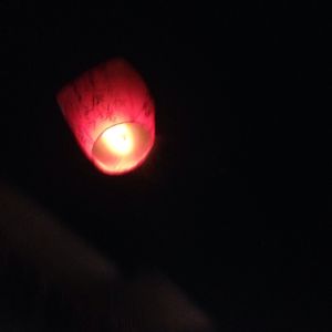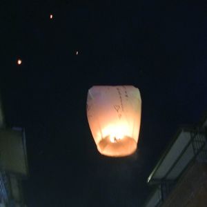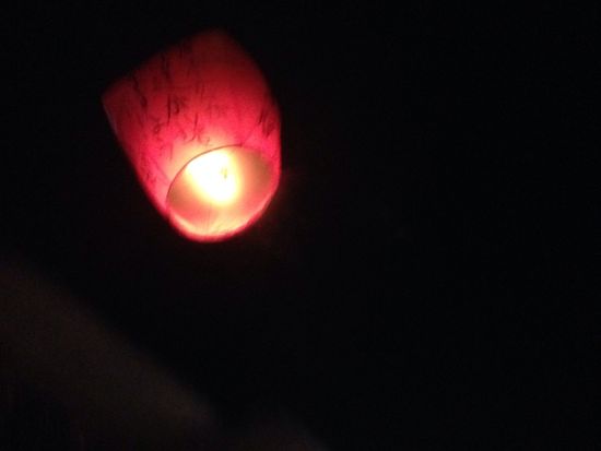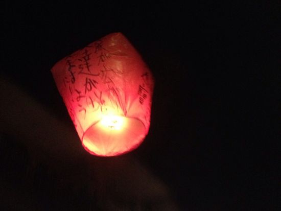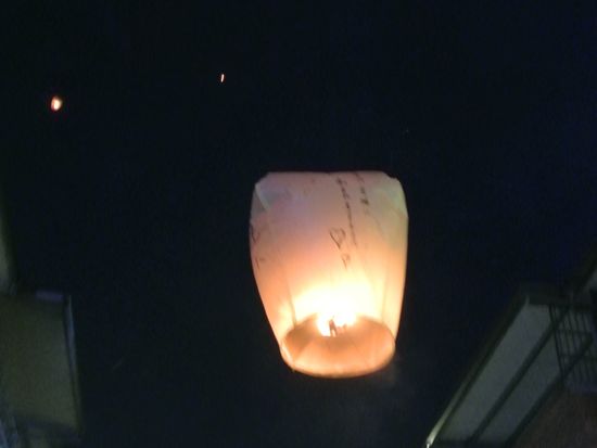 大きい提灯みたいなのに、願い事を書いて、空に飛ばします。