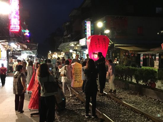 台北に旅行するのは二回目だったので、前回かなかったということもあり、十分の天燈上げツアーに参加しました。天気予報では、雷雨だったにも関わらず、いざ十分に行くと雨も一切降ることもなく、天燈上げを楽しむことができました。十分では、天燈上げだけでなく、線路沿いのお土産物屋さんなど台湾のノスタルジーな雰囲気も楽しめます。ツアー後の解散場所にある夜市も、一番有名な士林夜市よりも食事する面に関して言えば、充実していたように思います。こちらも自分たちだけでは行くことはなかったと思うので大満足でした。