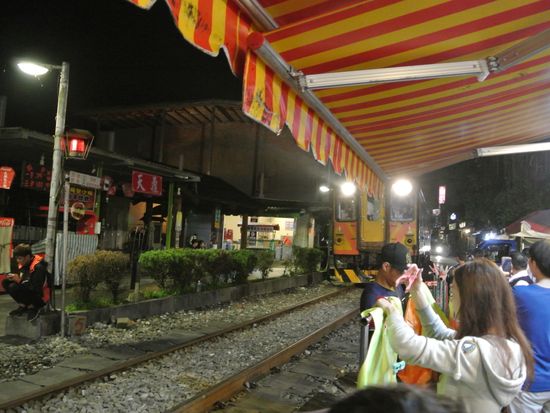 小雨降る中、山道⁇をバスに揺られ、現地もやっぱり小雨から本降りへ。ところが天燈上げは決行され(メインイベントは何としても決行でしょ)第一号が上がると周りからは歓声と拍手の渦。次から次へと上がって行く天燈にテンションアゲアゲ。偶然にも、数本しか通らない気動車が通り抜け、テツ男としては早速願いの一つが叶い感動は最高潮に達してました。夜しか行ってないけど、お勧めです。